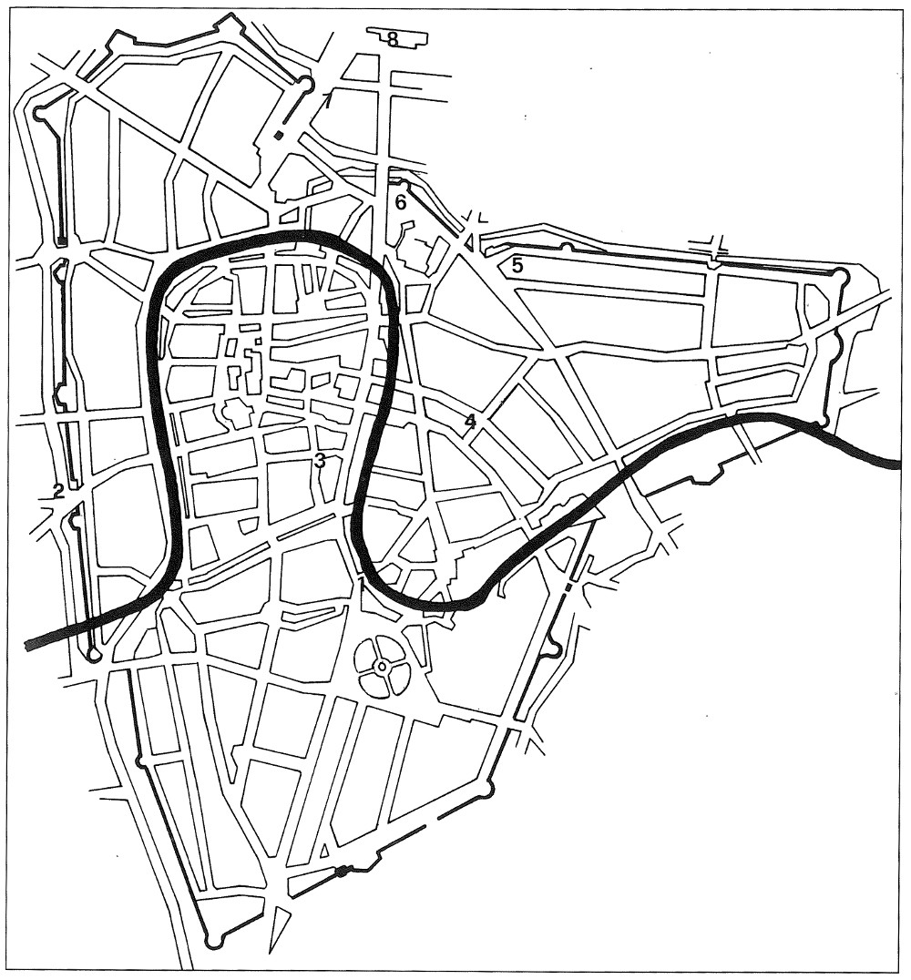 Plan of Padua with location of the places of worship. At n. 4: via C. Battisti - "Pozzo Dipinto" (da Zampieri 1994, pag. 41)