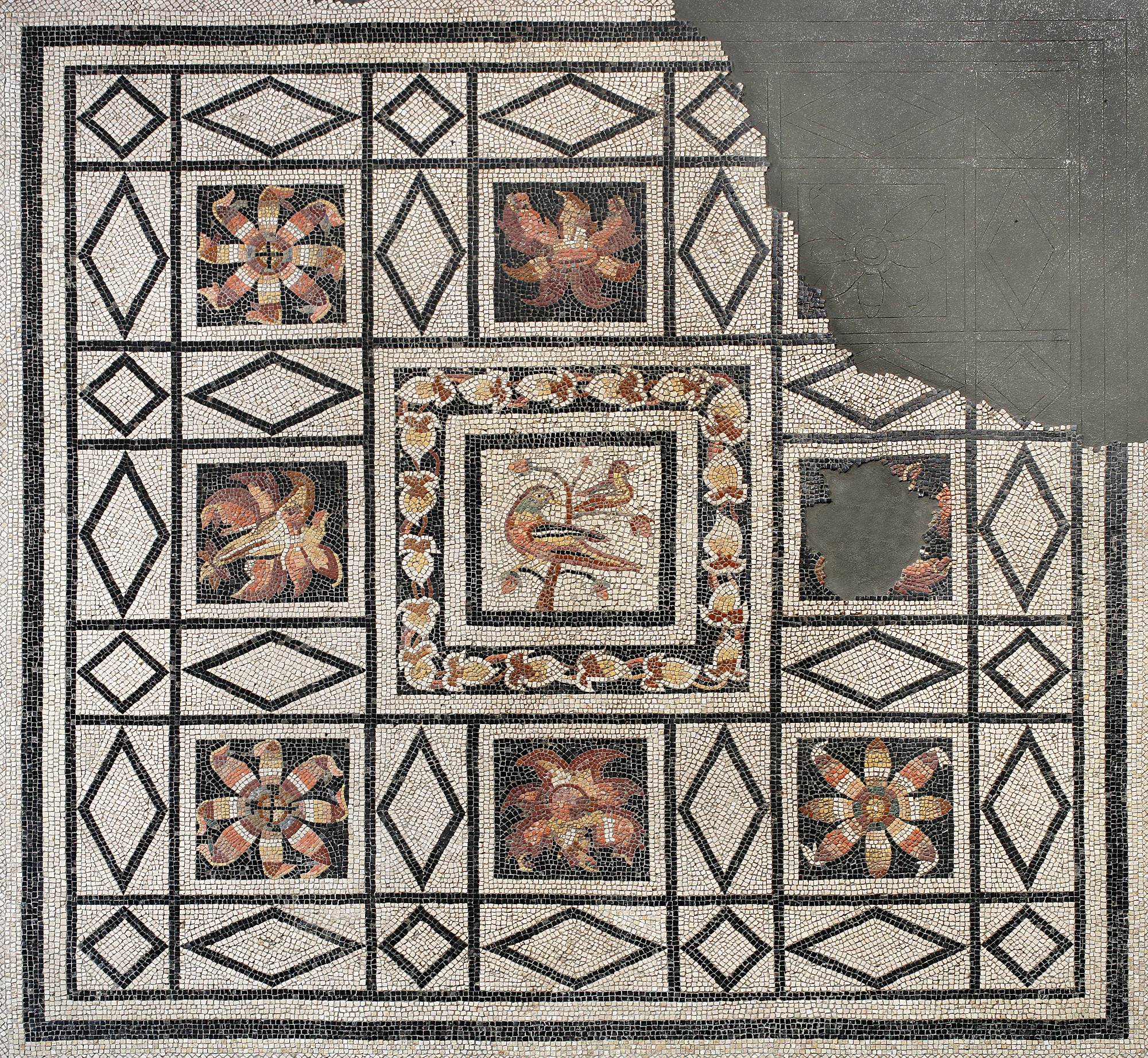 Detail of the floor in opus tessellatum found in via Cesare Battisti, Padova, Musei Civici - Museo Archeologico, inv. 828