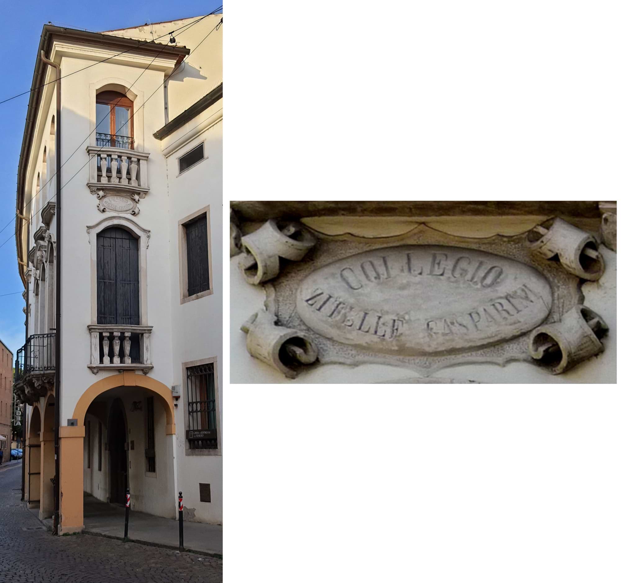 Nel 1598 il nobile padovano Francesco Gasparini, insieme alla moglie Giuliana e alla figlia Virginia, fondò per testamento un luogo «a guisa di monastero» destinato all'accoglienza delle fanciulle povere, che fu chiamato delle Zitelle Gasparine, per distinguerlo da quello delle Zitelle del Vescovo, un istituto di simile finalità voluto dal vescovo di Padova Marco Cornaro negli stessi anni (Portenari 1623, p. 484).